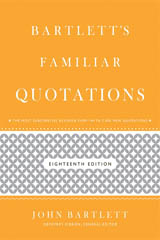More than 150 years after its original publication, Bartlett's Familiar Quotations has been completely revised and updated for its eighteenth edition. Bartlett's showcases a sweeping survey of world history, from the times of ancient Egyptians to present day.